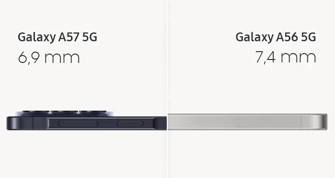 Ein größeres Update gibt es beim A57. Mit 161,5 x 76,8 x 6,9 mm und 179 Gramm ist es nicht nur deutlich schlanker, sondern auch spürbar leichter als das Galaxy A56, das noch auf 162,2 x 77,5 x 7,4 mm und 198 Gramm kam. Das A37 bleibt dagegen fast exakt auf A36-Niveau: 162,9 x 78,2 x 7,4 mm bei 196 Gramm statt zuvor 195 Gramm. Neu bei beiden ist aber die Zertifizierung nach IP68 statt IP67.